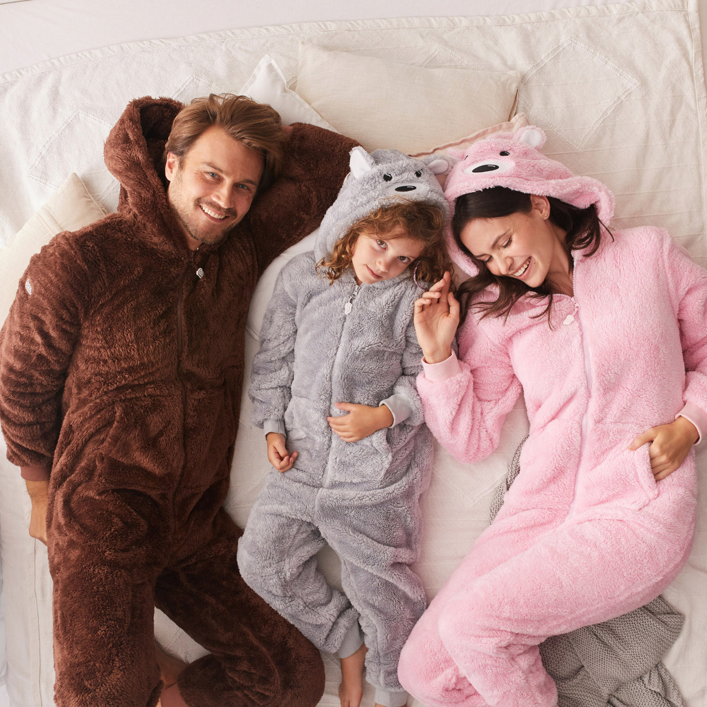 Our warm onesie collection includes styles with hoods, cute bear ears, detailed prints, and even zip-up designs for ease and functionality. Whether you're looking for a comfy piece of loungewear or a cosy gift idea, a teddy onesie ticks all the boxes.