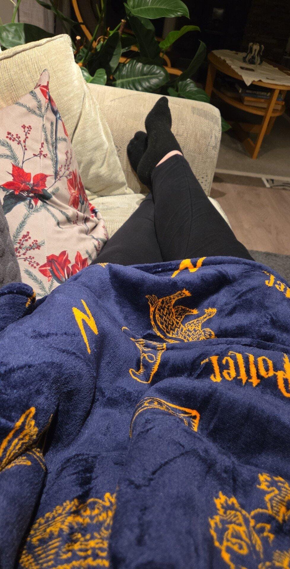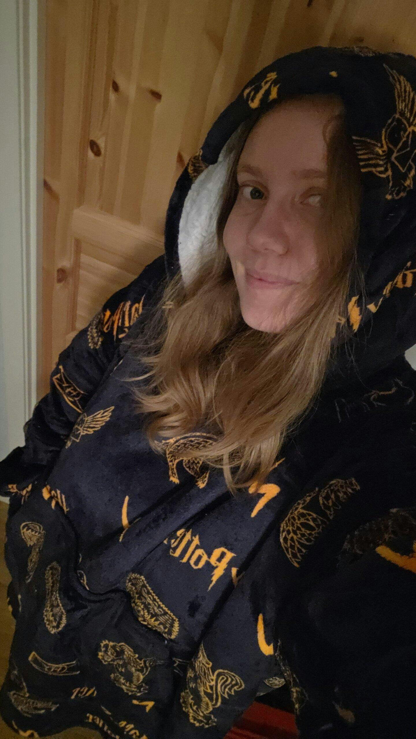 Stor, god og varm, fluffy. Fine farger og motivet er akkurat som på bildet.