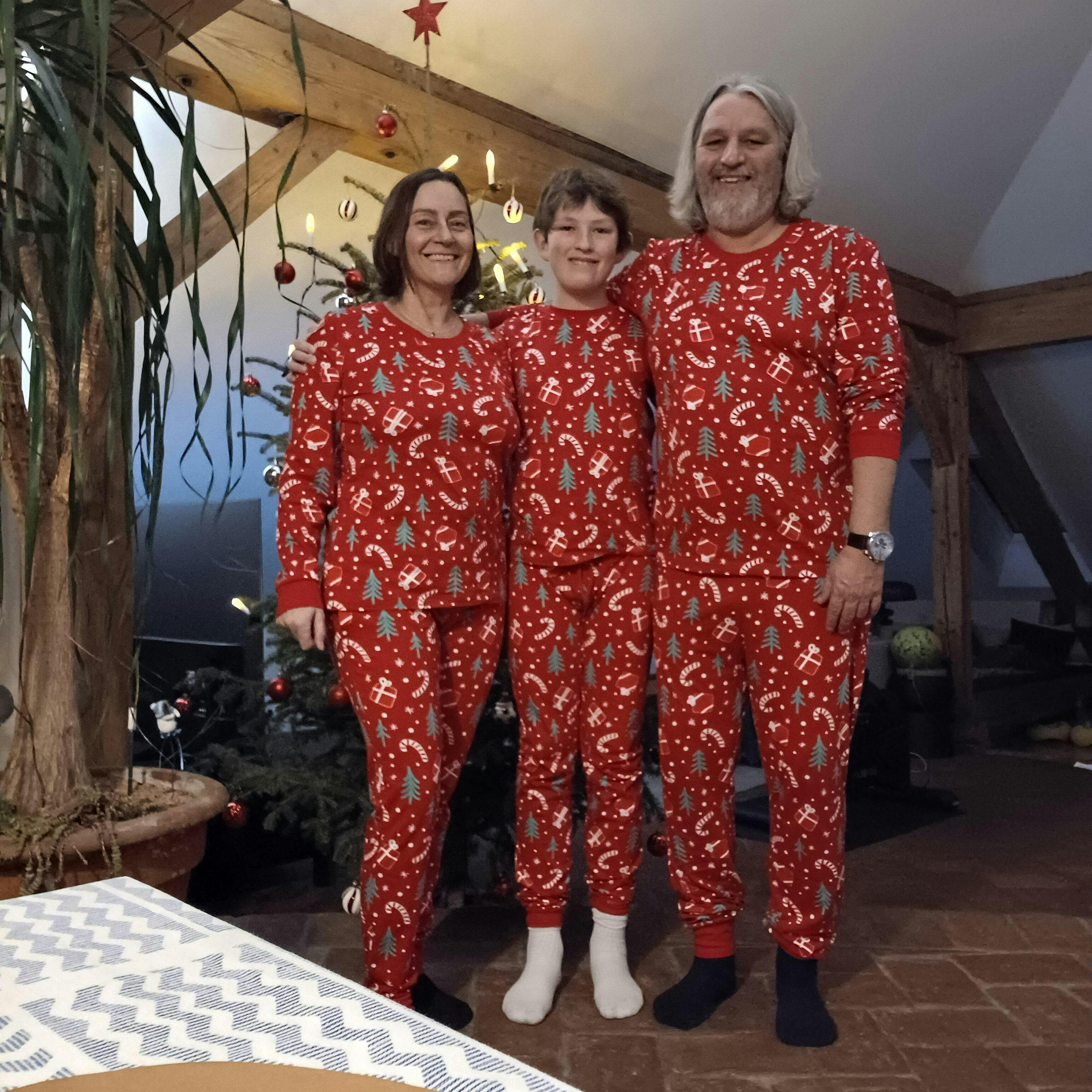 Wir haben die Pyjamas für Baby, Papa, Mama und Katze gekauft. Sie sind wirklich toll, super verarbeitet, gute Qualität, schnelle Lieferung und einfach eine witzige Idee! Wir wollten eine neue Weihnachtstradition und damit ist sie nun entstanden: Der Morgen am 24.12 startet mit Waffeln und im Weihnachtspyjama. We love it!