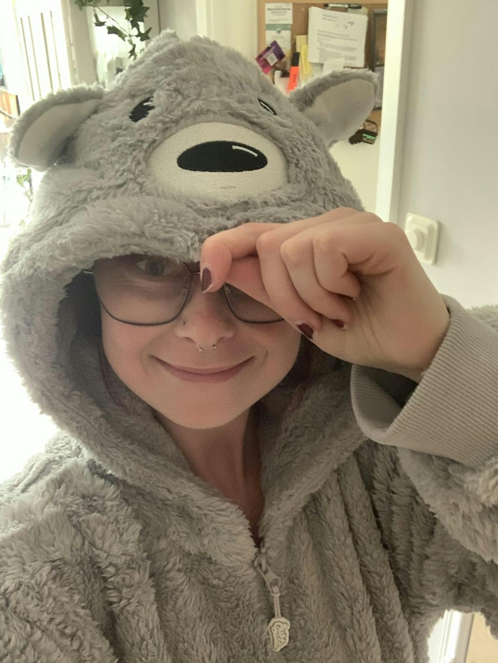 Super kuscheliger Onesie mit mega süßen Details. Ich liebe die Ohren und den Schwanz. Das Material ist auch innen weich und fusselt gar nicht. Ein paar kleine Verbesserungen hätte ich dennoch: