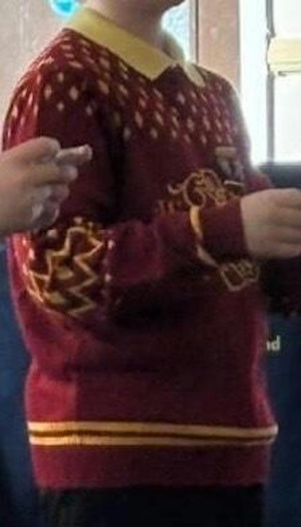 Lovely Hogwarts christmas jumper for a 10 year old Harry Potter fan. Ordered adult size small & it’s a perfect fit for Grandson who usually wears age 13 year old clothing. Good quality, bright colours and very nice design. A little different to what was on offer from high street. Very satisfied with my purchase & would recommend 👍